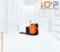 Plattform Kühlhaus, manuell hochklappbar; feste Seitenschutzwände mit kleiner Deichsel; Servolenkung, 8 km/h Version; Gleitschienen inkl. Kletterrolle; Gabelrollen Einfach, Stützrad doppelt; PIN-Code; Batterie Schnellverriegelung; blaues Warnlicht nach hinten gerichtet