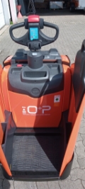 Plattform manuell hochklappbar, feste Seitenschutzwände mit schmalem Deichselgriff, kurzer Deichselarm, Servolenkung, 12,5 km/h Version, Gabelrollen Tandem, Stützrad Einfach- Premium, Antriebsrad - Premium, PIN-Code