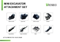 Quick Coupler, Rake, Grabber, (1) 8 in Bucket, (1) 32 in Bucket, Auger w/ (1) 8 in & (1) 12 in Bit, Ripper, Item is new/unused.