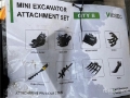 Rake, Ripper, Grabber, 12 in Auger, 8 in Auger, 8 in Narrow Bucket, 24 in Bucket, 31 in Bucket
