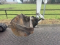 Ausgestattet mit hydraulischem Schnellwechsler und 2 Löffeln (Grabenräumlöffel und Tieflöffel).