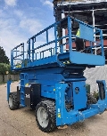 The Genie GS5390RT rough terrain scissor lift is built for extra-rugged performance and is able to traverse through uneven, rough terrain environments.