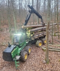 Baujahr 2019, ca. 11.000 Betriebsstunden, Motor John-Deere 6 Zylinder mit 210 PS, Hydrostat, Kran CF7 mit 10 m Reichweite mit IBC Steuerung und Holzgreifer, Bereifung vorne und hinten 710 – 26,5 Alliance TRS, hydraulisch verbreiterbare Rungenkorb mit höhenverstellbarem Stirngitter ausbalancierte Bogieachsen, Krandämpfung, Vakuumpumpe, Befüllpumpe für Diesel und Hydrauliköl, Rückfahrkamera, Bio-Öl, aktuelle Timbermatic Software, Goldfolie, Standheizung, Klima, Arbeitsscheinwerfer LED