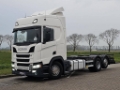 Number of axles: 3, Configuration: 6x2, Own weight: 10250 kg, Gross vehicle weight: 26500 kg, Total fuel capacity: 1100 litre, 2nd fueltank, Trailer coupling, Kingpin size: 40 DIN, fifth-wheel: Fixed, Diff. locks: 1, Suspension type: air suspension, Cabin type: Sleeping cabin, Cruise control, Tacho, Digital tachograph, Airconditioning, Parking Airco, Parking heater, Electric windows, Electric mirrors, Radio/cassette, Color: white, Heated mirrors, Lighting type: Led lamps, Laneassist, Climatecontrol, Seat heating, Bluetooth, Engine capacity: 331 Kw (444 Hp), Fuel type: diesel, Euro: 6, Gearbox kind: Opti-cruise, Gearbox make: Scania, Number of Gears: 12, Add. break system, Retarder make: Scania, Power steering, ABS, ASR, Starter battery, Twistlocks: 1x20, Systemlength: 80 cm, Central locking, Seats configuration: 1+1, Seat cover: cloth, Chair adjustment: Manually, R 450 B 6X2*4 NB // WB 475 // LED // RETARDER // ASSE STERZANTE