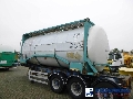 Insulated stainless steel (inox) tank container, Capacity 30000 liters, 1 Compartment, Steam heating, Tank material code DIN 17441 1.4401, Test pressure 4.5 bar, Max working pressure 3.0 bar, 20 ft. Year of construction 1998 // Advertisement excludes the trailer. Tank container only. Shipment dimensions : 720x250x260 cm.