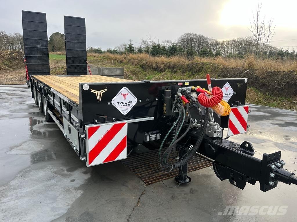 Tyrone TLL33 årgang 2025 ny maskintransport vogn som kan indregistreres som blokvogn med blokvognsattest til traktor. Er udstyret med affjedret træk, hydraulisk støtteben, d-ringe til kædesurring, udtræk samt træ til udtræk, forbrednings kasser, udtrækslys, led lygter hele vejen rundt, udvendig betjening af ramper som kan styres enkeltvis. Ramperne kan justeres hydraulisk sidevejs afhængig hvor bred en last man ønsker at læsse. Ekstra brede dæk 235/75-17,5. 10 tons High speed aksler. Med denne vogn kan du køre lovligt selvom din last er bredere end ladet. Totalvægt 33tons. Last ca 27tons.